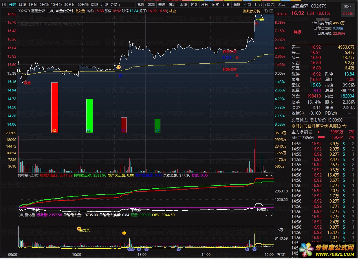 通达信【AI量化分时量化】指标,抓板,吸筹,突破,起爆,机构能量(分时主图+分时副图) {AI量化分时--主图}