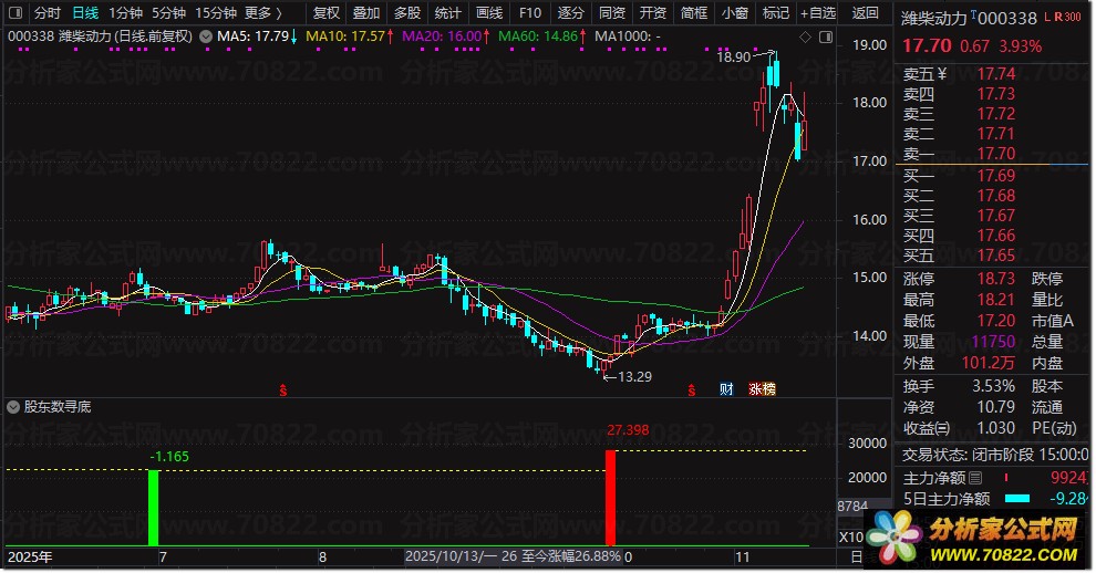 股东数寻底指标含副图和选股功能,通过股东数变化判断底部,提供指标帝源码,仅限通达信电脑版使用。