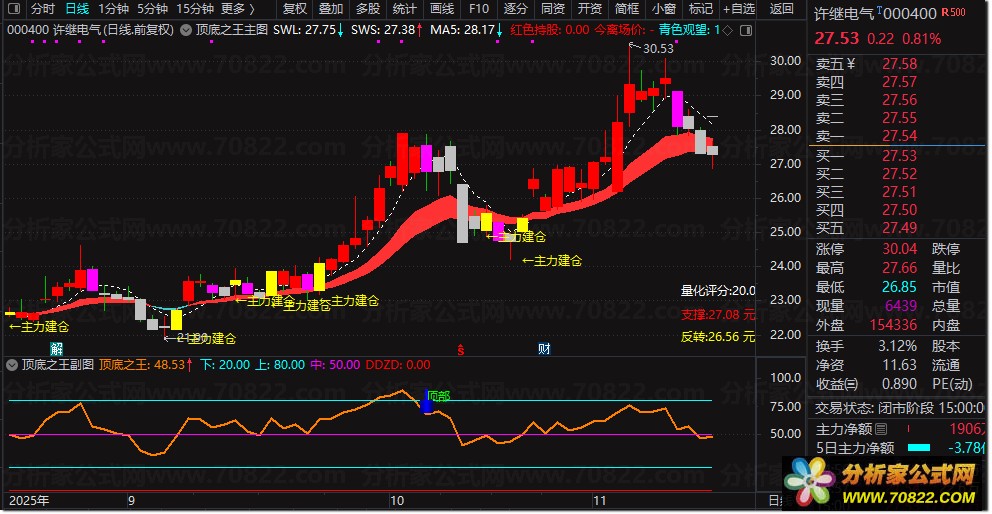 主图主力建仓信号与副图底部信号形成共振,构成确定性见底信号;当见底信号确认后,主图再次出现主力建仓信号时,即构成加仓买点信号。