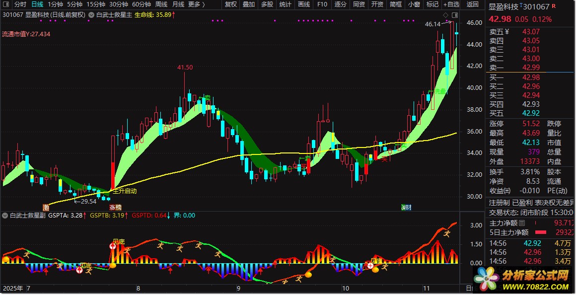 当副图见底信号与主图主升启动信号形成共振,且副图量能柱同步放大、趋势线明显变宽时,构成确定性买点。此为捕捉主升浪启动的核心条件。