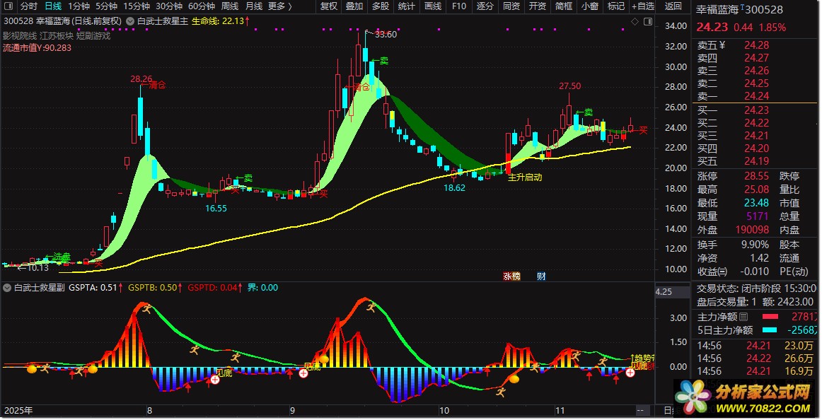 主图出现"清仓信号"即为明确卖点,此时应果断离场规避风险。