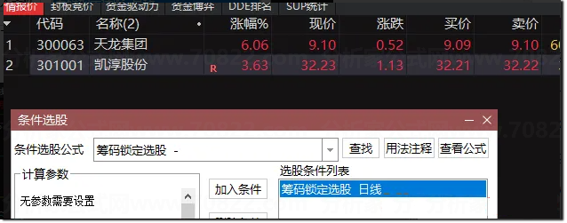 本文仅提供一个副图:筹码锁定F 和一个选股 筹码锁定选股,