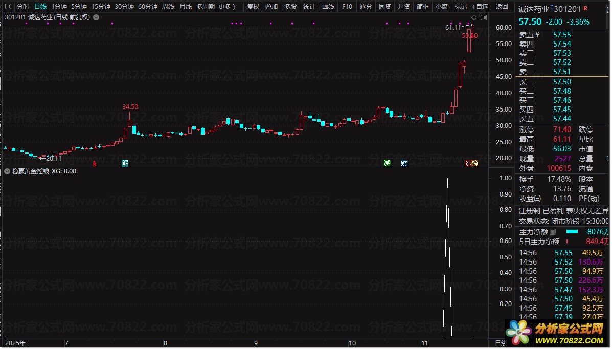 〖稳赢黄金摇钱树〗堪称金钻,无未来函数 手机电脑通用版 稳赢黄金摇钱树堪称金钻指标,无未来函数源码公开,无时间限制,手机电脑均适用。本指标出票信号数量适中,例如最近30个交易日仅出19票,胜率高且低吸上车策略被套概率低。