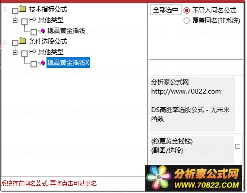 * 关于股票公式时间限制,如果在引入大智慧公式,交易师公式或者飞狐公式的时候,发现公式名称栏是空白的,这时候调整电脑时间到1997年,又能出现公式名称,并且能正常显示,可能是公式使用期限已过。