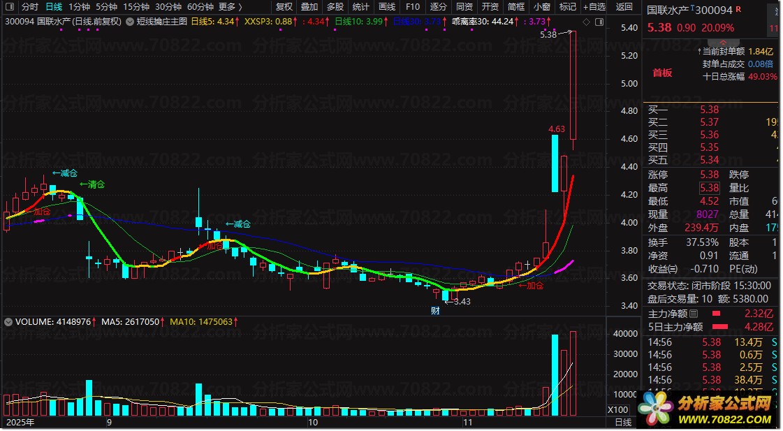 〖短线擒庄〗主图副图选股指标,加减仓信号,强势股狙击战法 短线擒庄指标使用方法: