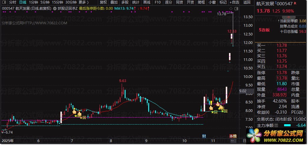 〖妖股迂回杀〗指标,专攻妖股回头 主图&选股指标 {妖股迂回杀--主图}