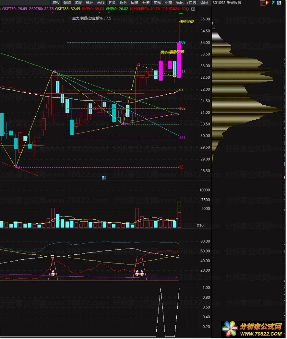〖筹码稳健突破〗核心就是筹码成本向上转移,趋势向上,筹码相对集中,放量突破