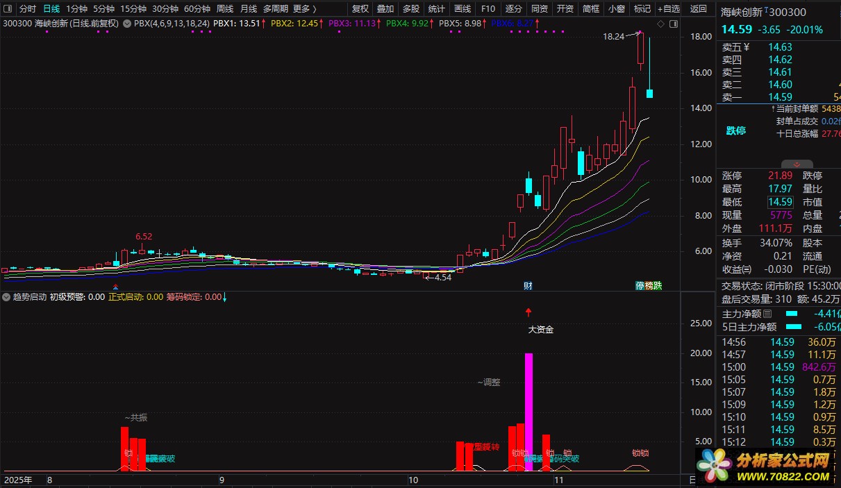 现分享一款基于浮筹尖峰交易指标设计的趋势启动副图指标,虽元素繁复,但核心逻辑清晰可循。其交易逻辑精髓在于:通过浮筹动态捕捉主力动向,结合量价关系验证信号有效性。能否洞见其中奥妙,取决于对指标细节的精准把握。
