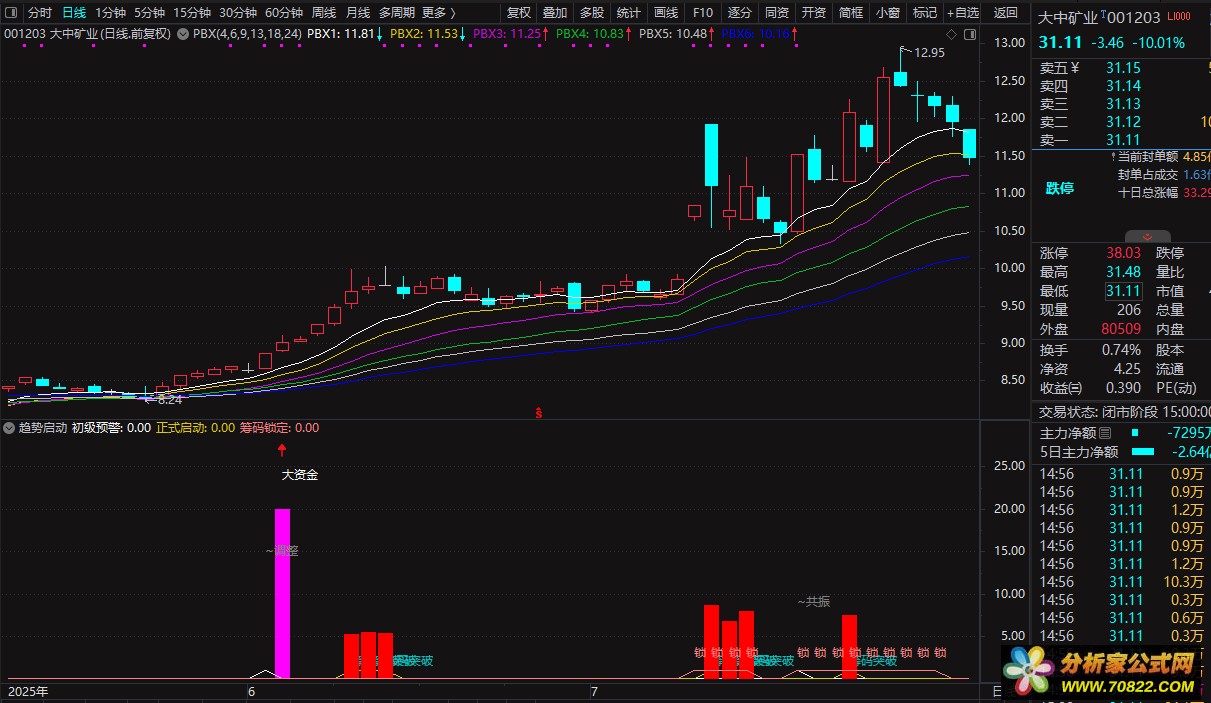 突破确认验证:关键价位处大资金介入与量能配合情况。