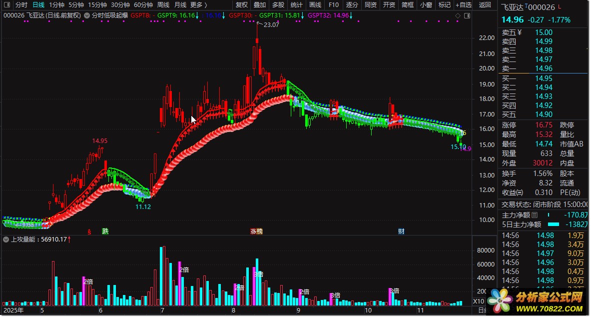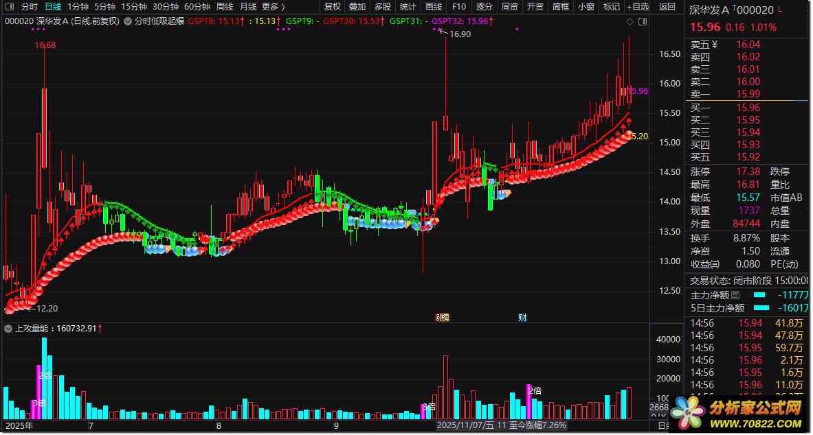 - 趋势判断:中轴线(gspt29)向上且为红色时,表明处于多头行情,可持股待涨