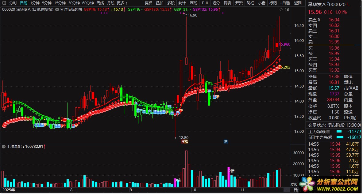 指标通过颜色变化直观显示多空转换,加权通道有效过滤震荡信号,特别适合捕捉分时图中的起爆点,帮助投资者在启动初期及时介入。