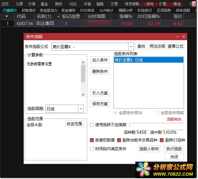 指标在电脑上用,交易日9:25后~9:30之前,快捷键 Ctrl+T 选择“竞价至尊X”,执行选股,结合当前行情择优,也可用幅图“竞价至尊”排序,手机没有排序功能,可用选股平台选股自编指标里找到对应的指标执行操作。