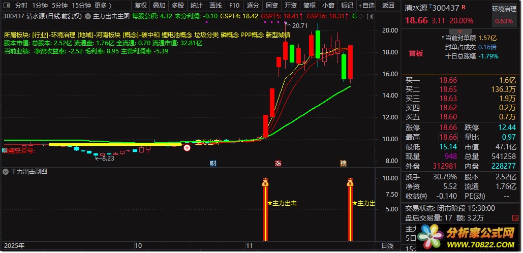 【主力出击】主副图+选股指标,精准捕捉主力动向 本公式通过多周期均线(3/6/12/24日)平滑处理,结合价格波动与成交量条件,识别主力异动信号。