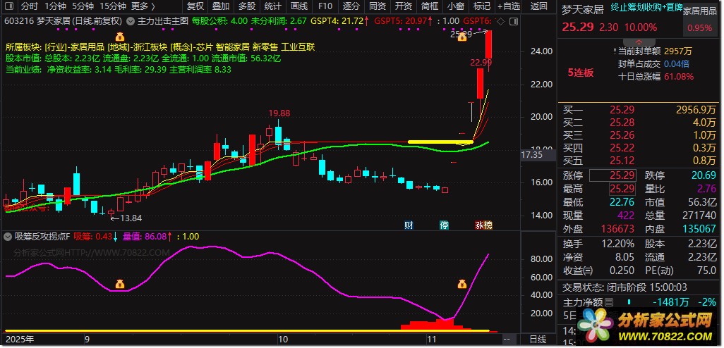 适用于震荡市或底部区域,当“吸筹”线突破阈值且量值上穿GSPT13时,预示主力吸筹完成,可能迎来反攻行情。操作时需结合成交量验证,避免假信号。