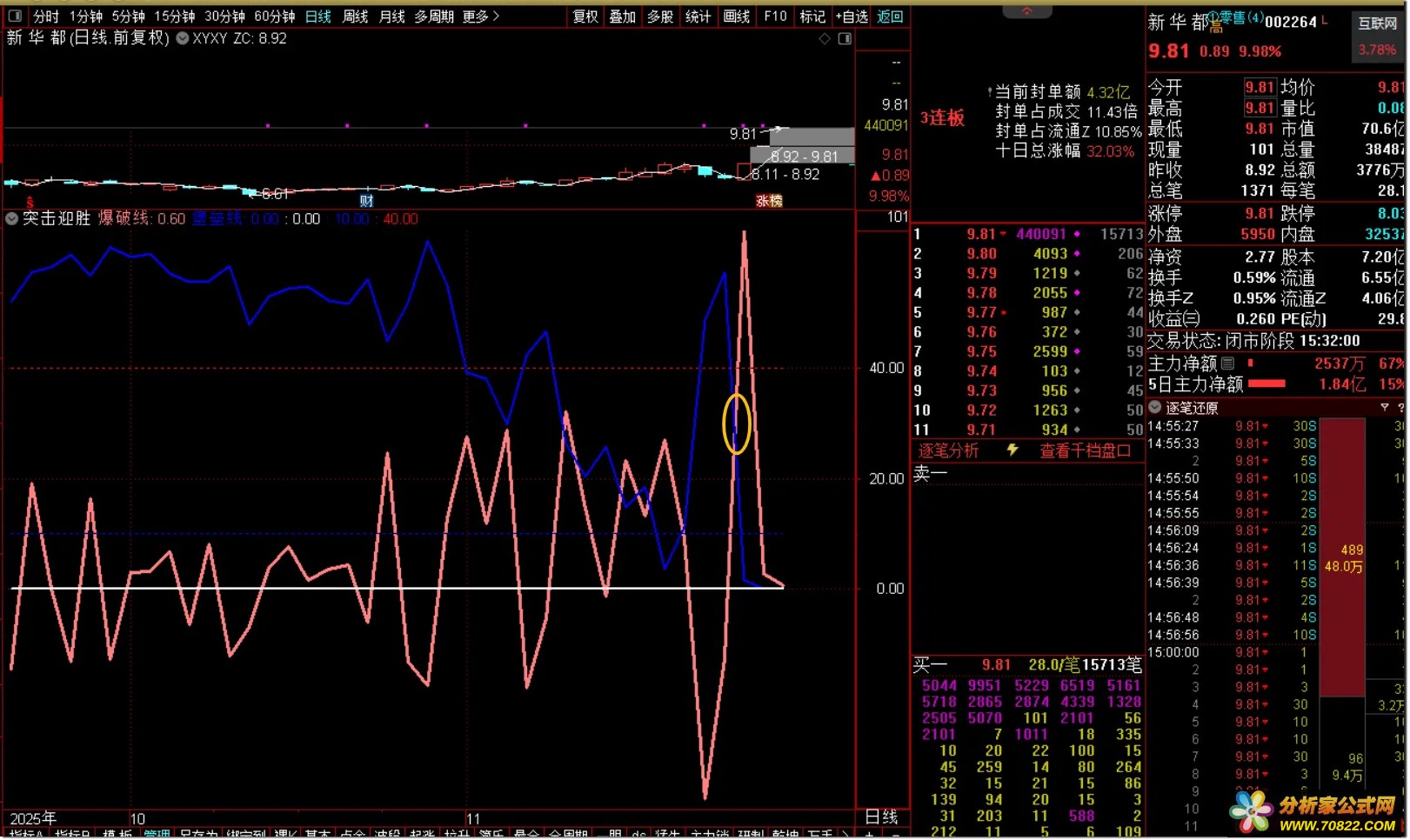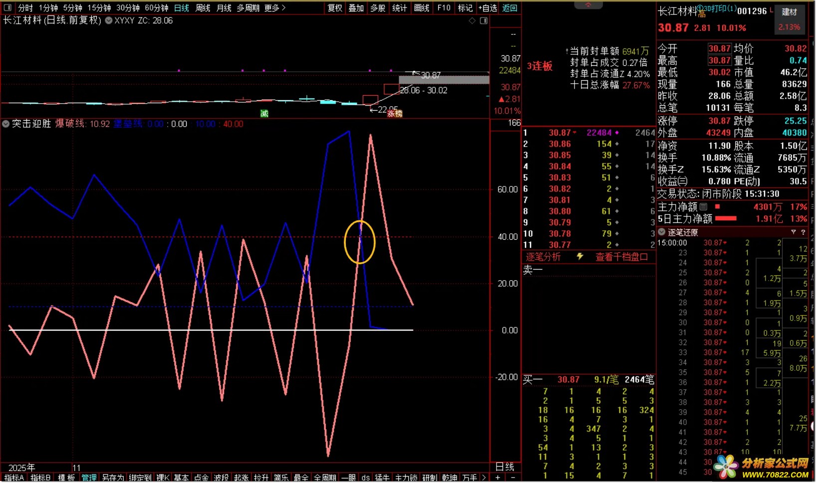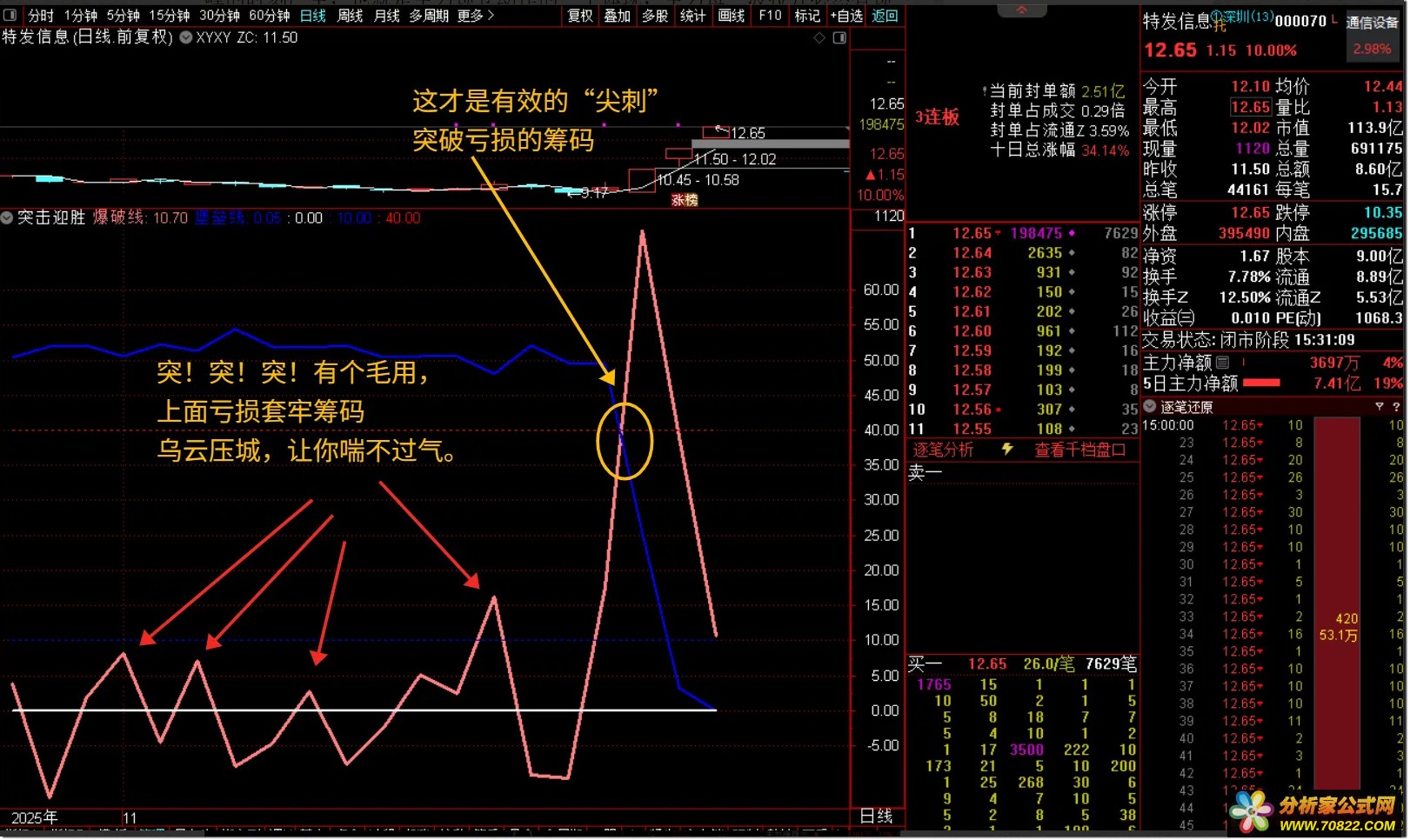 有悟性的投资者还会发现,尖刺指标 刺破亏损筹码后所达到的高度,往往决定了后续股价拉升的高度与连板强度。这背后的逻辑在于,尖刺 本质上就是 浮筹尖峰,其高度直接反映了 主力锁仓 的程度。