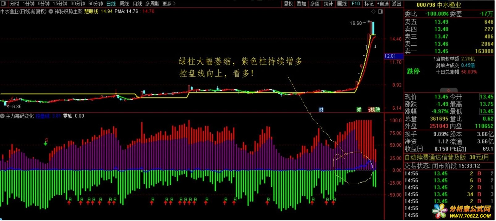 2、绿柱快速萎缩 → 表示套牢盘消化,抛压减少