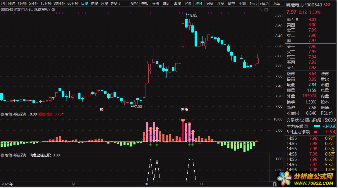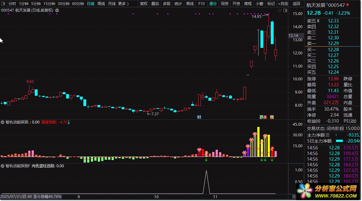 智轨动能探测仪选股:选股核心:粉色+蓝柱 肉色+蓝柱的选股