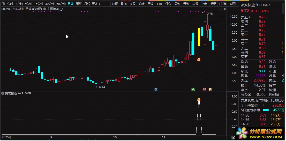 『主图擒龙』主图副图,一键锁定强势股,捕捉涨停起爆点! “主图擒龙”是一款专为通达信软件设计的高效技术指标,旨在帮助投资者精准捕捉股票的强势启动点,尤其适合短线交易。该指标通过多维度条件筛选,综合价格、成交量、均线系统等要素,识别潜在牛股。