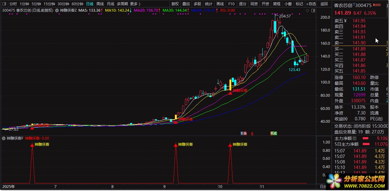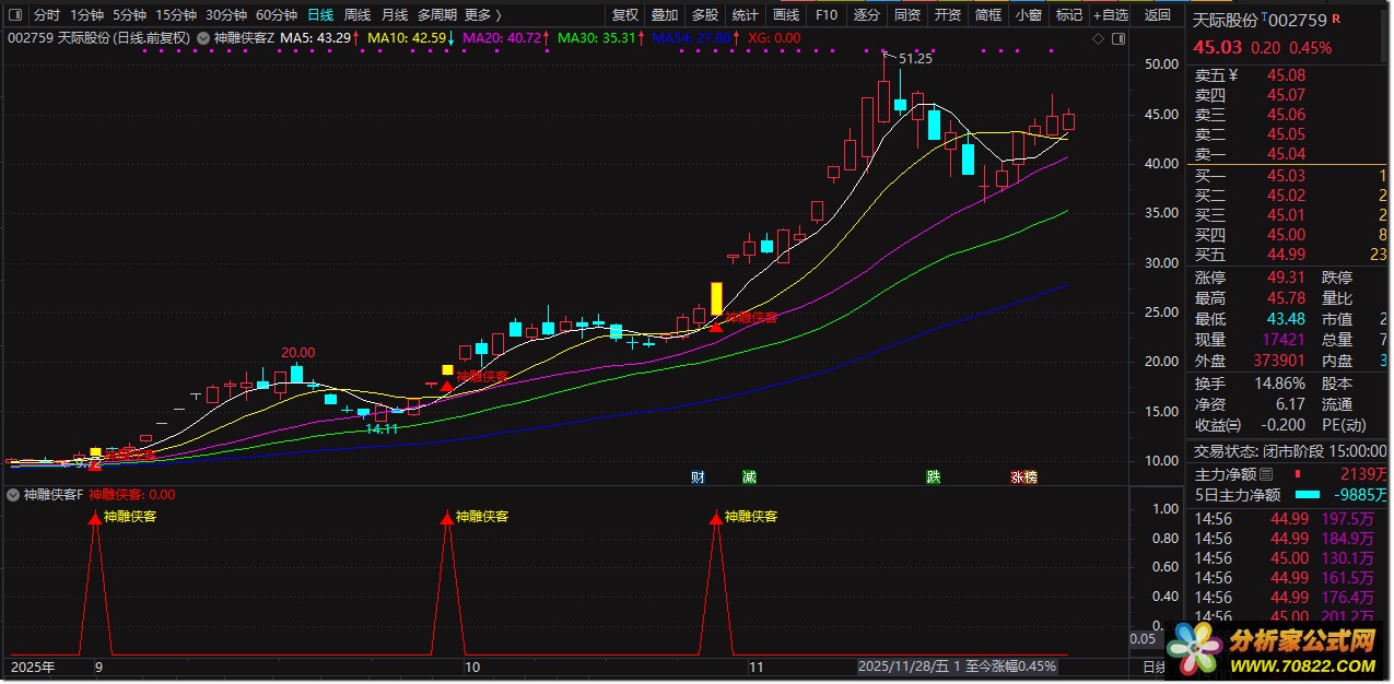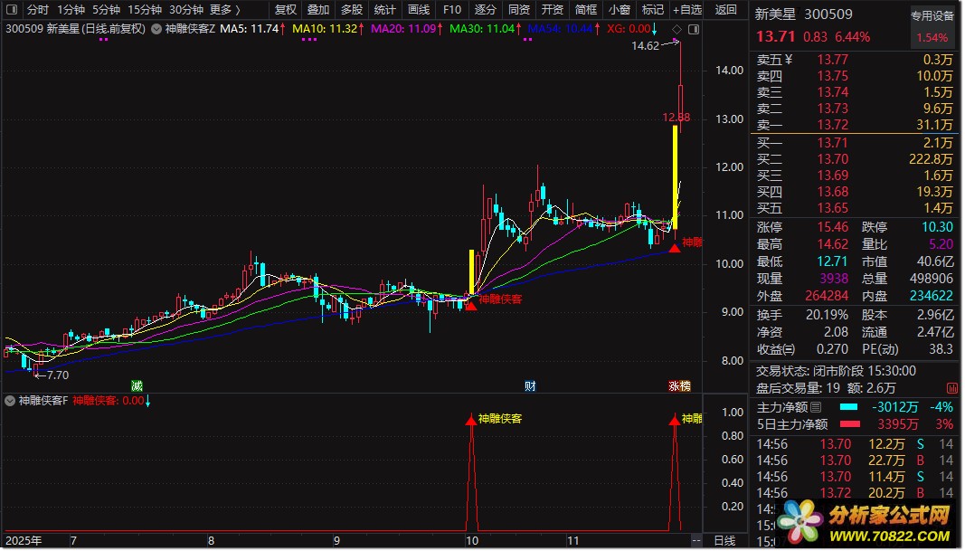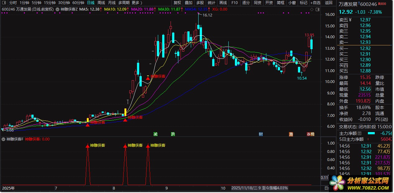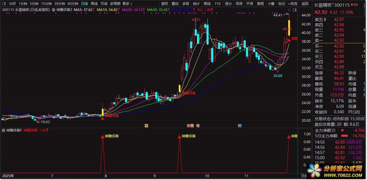 神雕侠客指标包含主副图和选股公式两部分,无未来函数,适合中短线稳健操作策略。