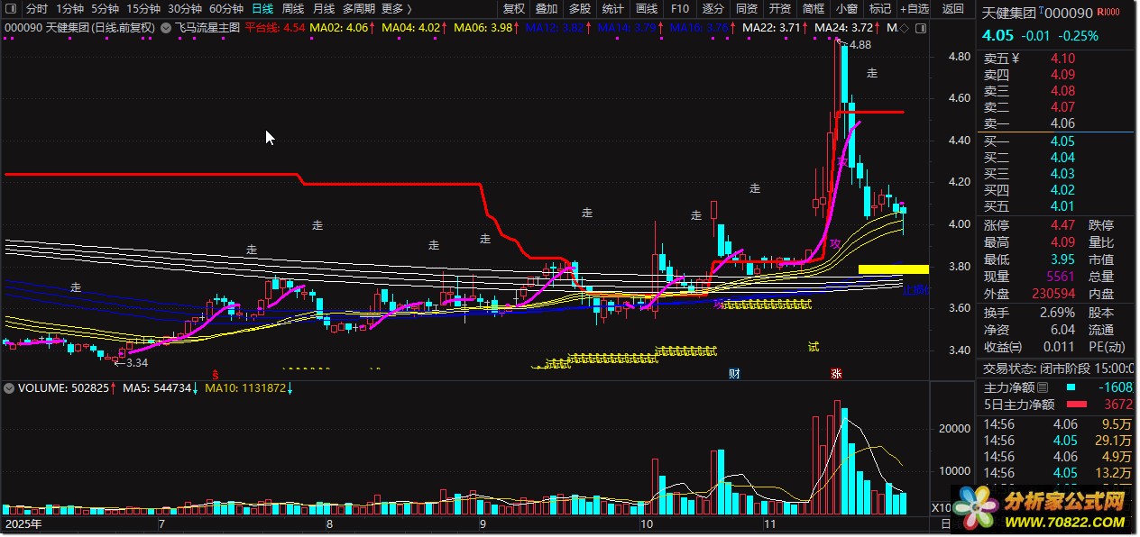 〖飞马流星〗主图选股指标——实战验证的稳定盈利工具(附核心使用方法) 今日分享“飞马流星”主图及选股指标,该指标无未来函数,历经多年实战验证。在牛熊周期中均展现稳定盈利能力,覆盖超短线至长线全周期交易需求,适配多元投资风格。以下为“飞马流星”指标核心使用方法详解: