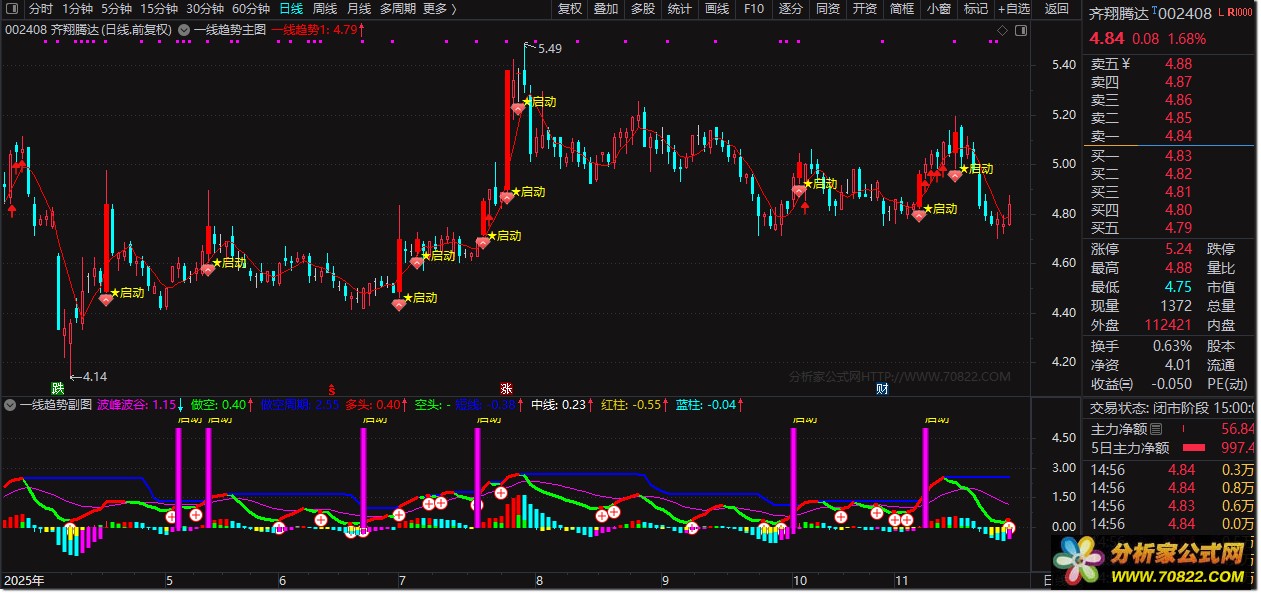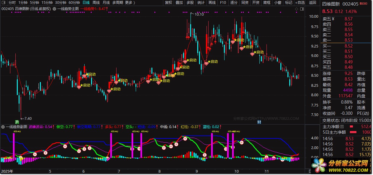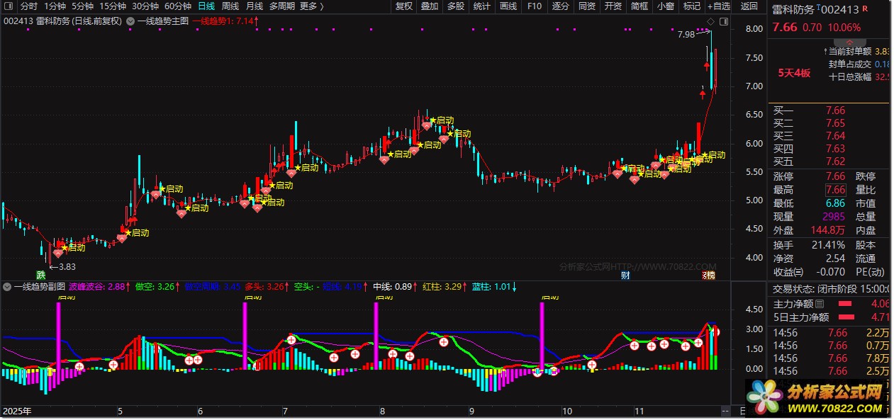 〖一线趋势〗副图选股,精准捕捉买卖点的利器 本指标通过多维度计算揭示趋势强弱与转折信号。