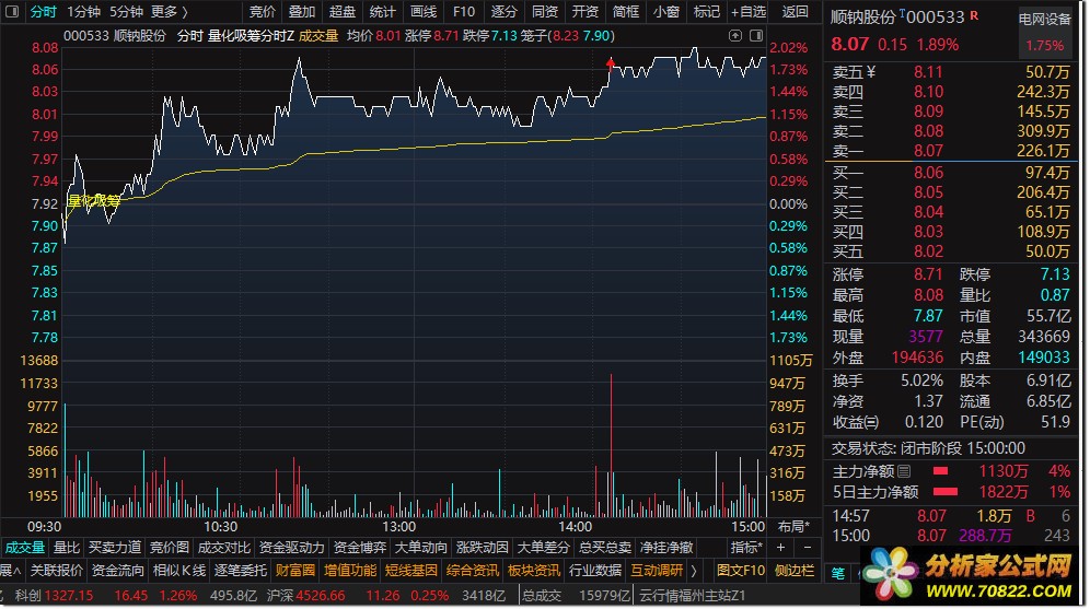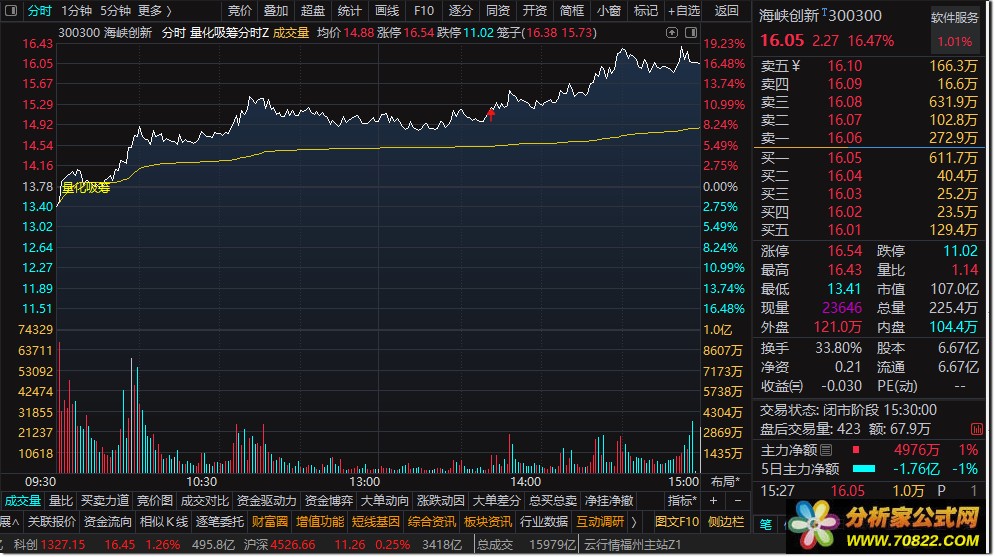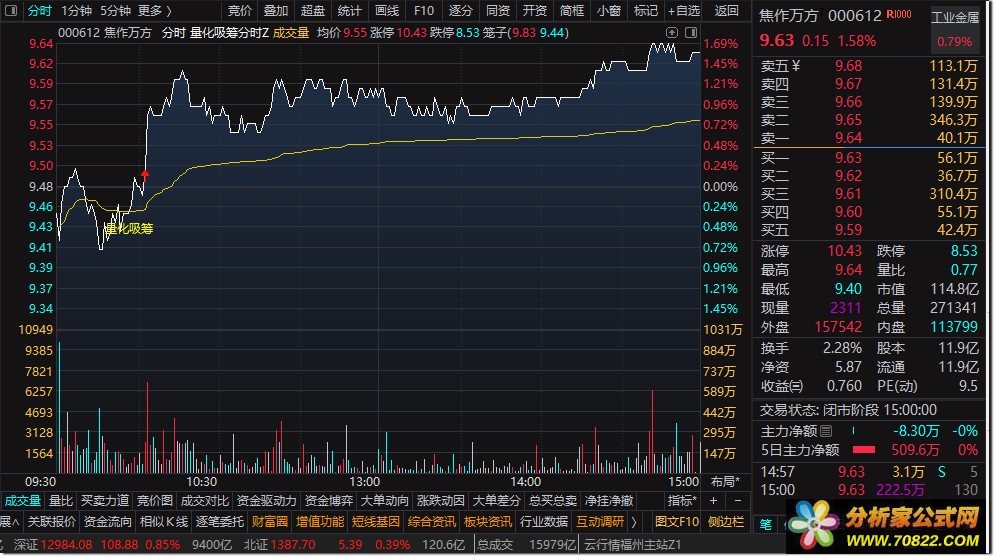 【量化吸筹分时主图】精准捕捉盘中量化吸筹 游资合力启动 高效周期突破强势买入良机 指标详细说明: