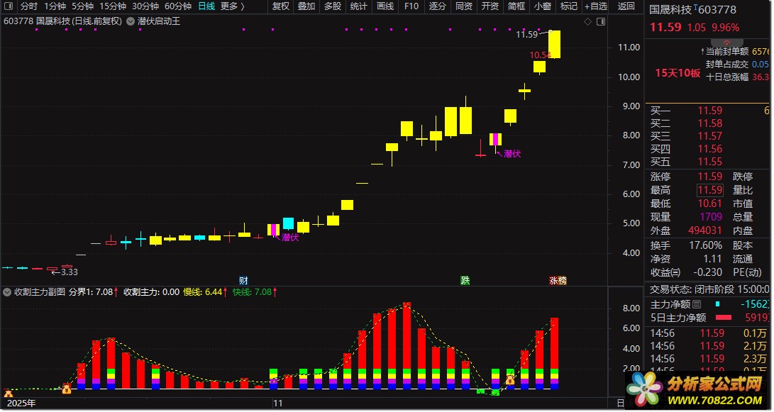 买入:出现粉色“潜伏”标记且黄色K线共振时跟进;