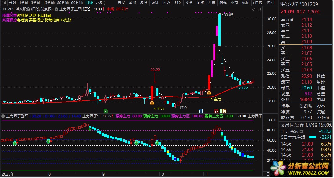 【主力因子】精准捕捉主力动向的利器 本公式通过多维度量化主力行为,核心逻辑如下:
