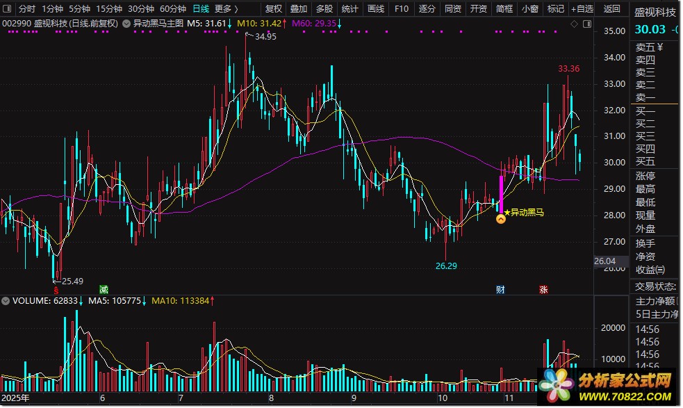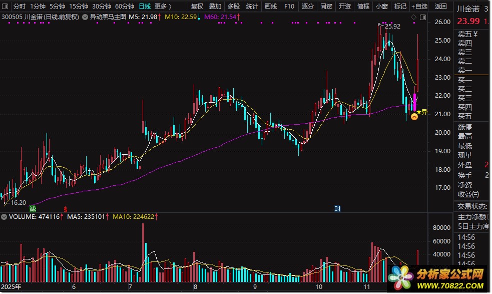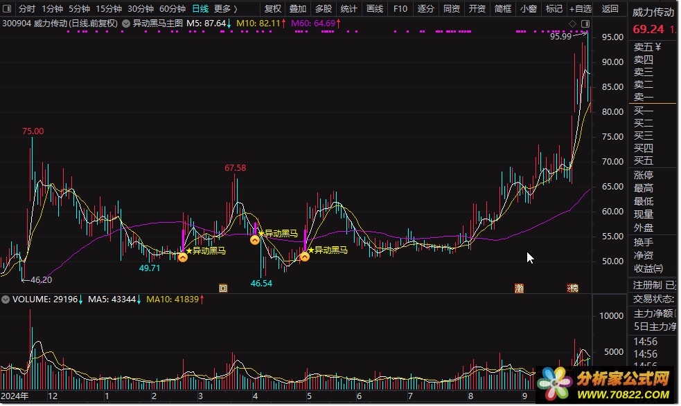 稳定可靠,无未来函数干扰:异动黑马指标在设计上严格遵循技术分析原则,不包含任何未来函数,确保信号的准确性和稳定性,避免因函数漂移而导致的误判,为投资者的决策提供坚实保障。