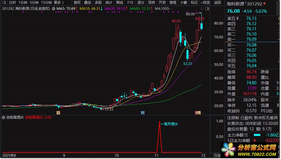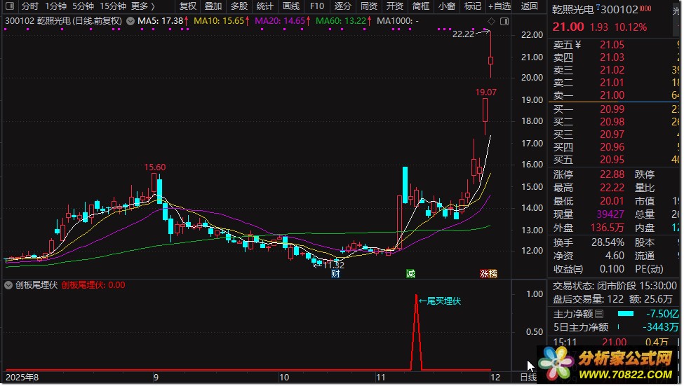 创板尾埋伏指标体系包含1个副图指标、1个选股公式及配套的尾盘T1操作策略,所有组件均无未来函数设计,确保信号稳定性。该指标支持手机端与电脑端同步使用,特别针对创业板股票的尾盘交易场景开发,为投资者提供次日拉升概率的预判参考。