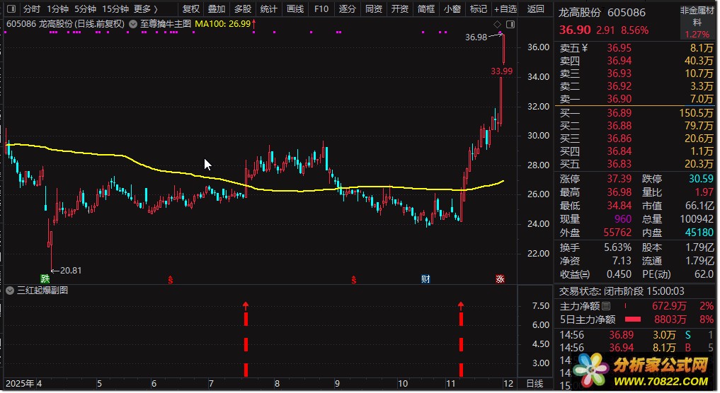 三红起爆指标的核心优势在于其对于市场反转信号的敏锐捕捉能力。当三红信号在图表上清晰显现时,这往往预示着行情即将启动,为投资者提供了一个宝贵的入场时机。该指标特别适用于追求高效短线交易的操盘手,通过精准把握市场脉搏,助力实现盈利最大化。