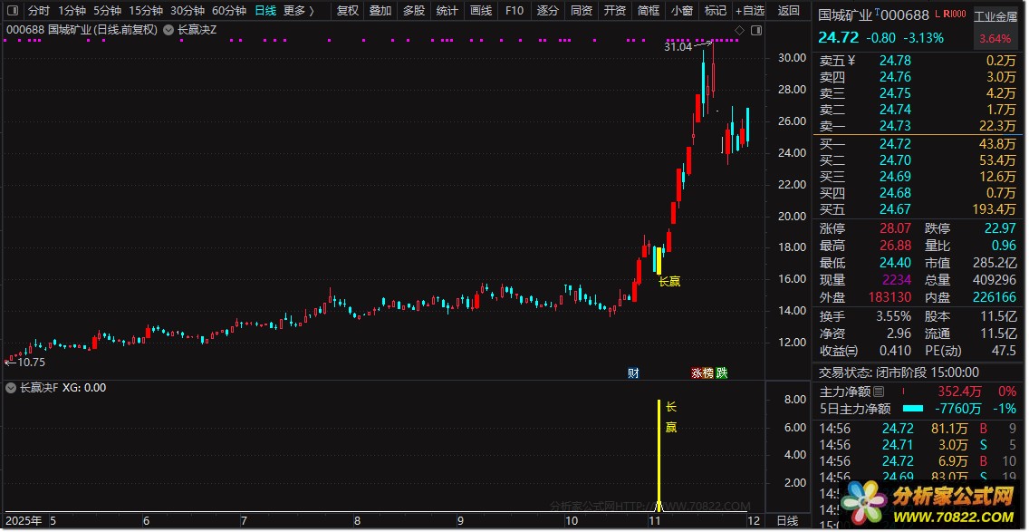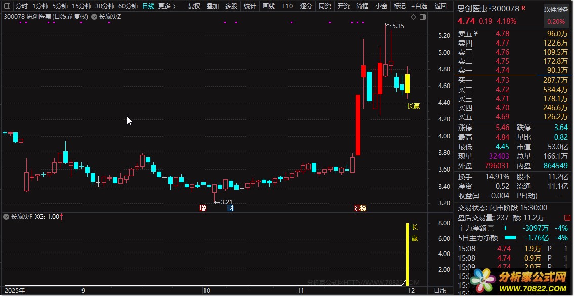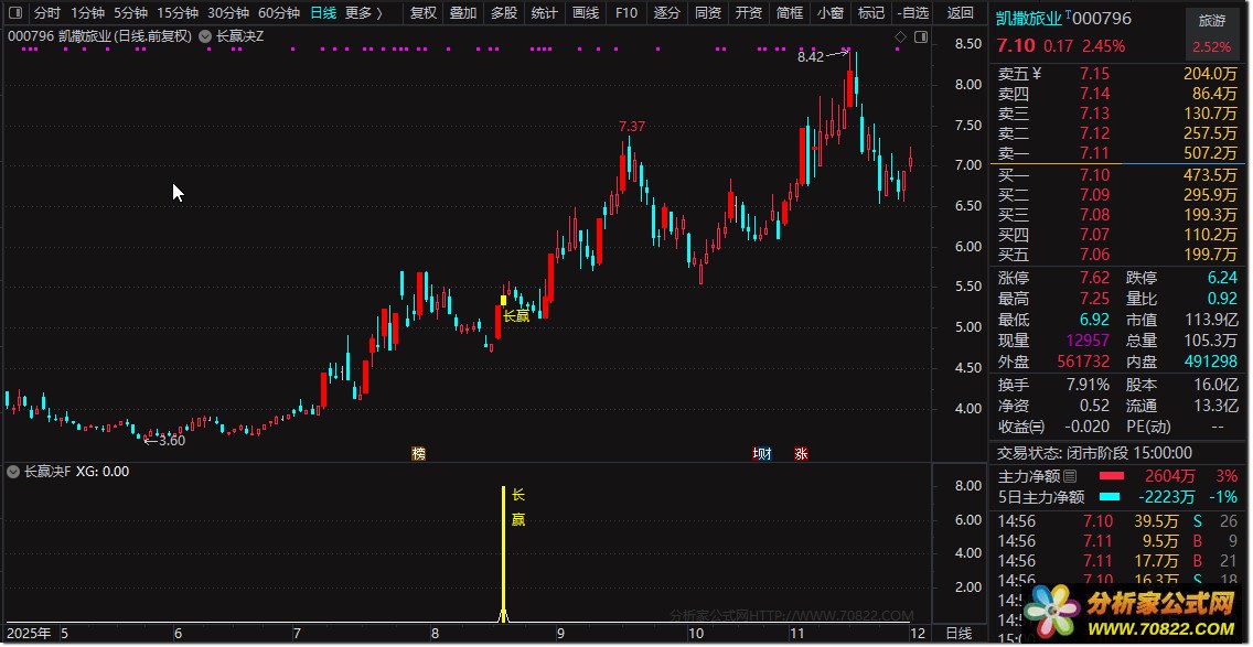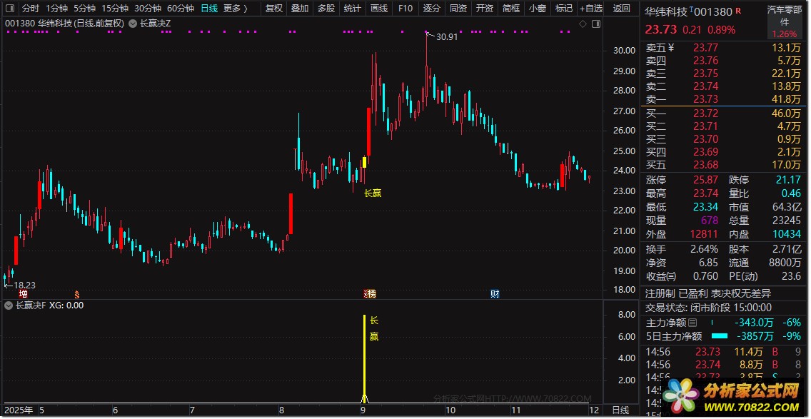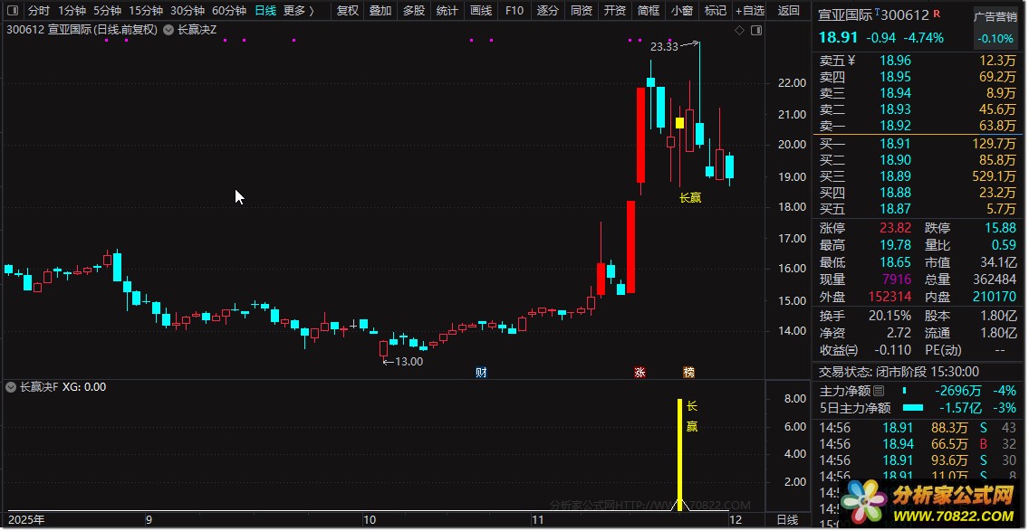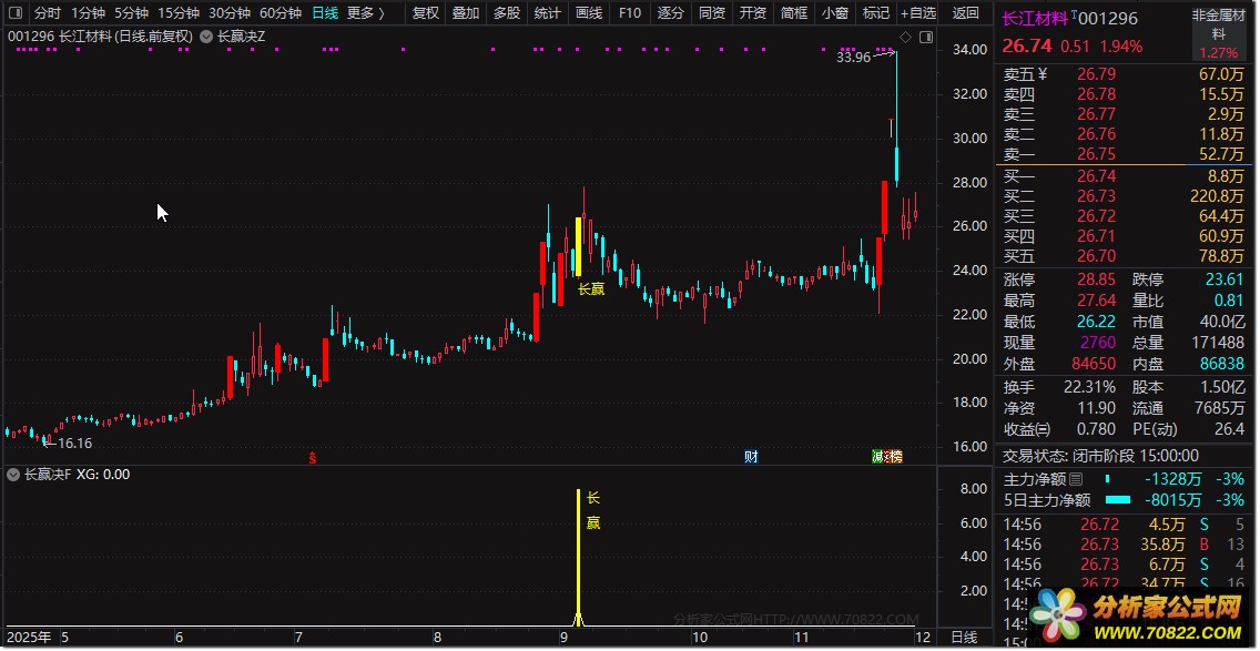 〖长赢诀〗精品指标,精准捕捉强势股回调第二波起涨契机!选票少且精! 指标涵盖内容:1个主图、1个副图以及1个选股指标,此炒股指标仅供股友交流学习使用!