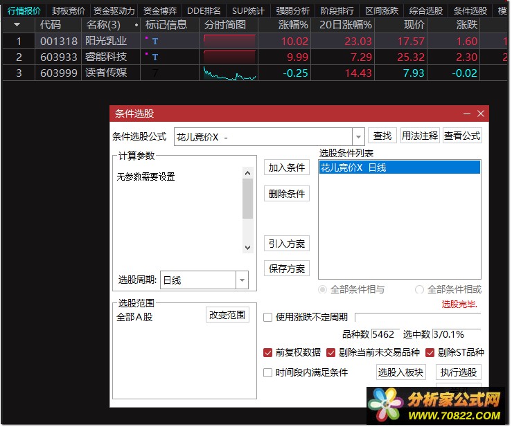 在炒股的十年征途中,我始终致力于打磨出一件股市利器。正如古语所言,“工欲善其事,必先利其器”。在当前竞争异常激烈的股市环境中,没有一件得心应手的工具,实在难以立足。经过五年的不懈努力与实战检验,我精心打造的这款花儿竞价指标公式终于问世。在普涨行情中,它能够助你一秒锁定大牛股,比如,在今日市场突发大利好的情况下,运用此指标,让你开盘即能精准上车,把握先机。