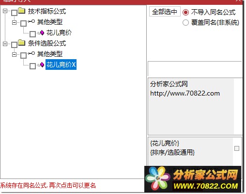 * 关于股票公式时间限制,如果在引入大智慧公式,交易师公式或者飞狐公式的时候,发现公式名称栏是空白的,这时候调整电脑时间到1997年,又能出现公式名称,并且能正常显示,可能是公式使用期限已过。