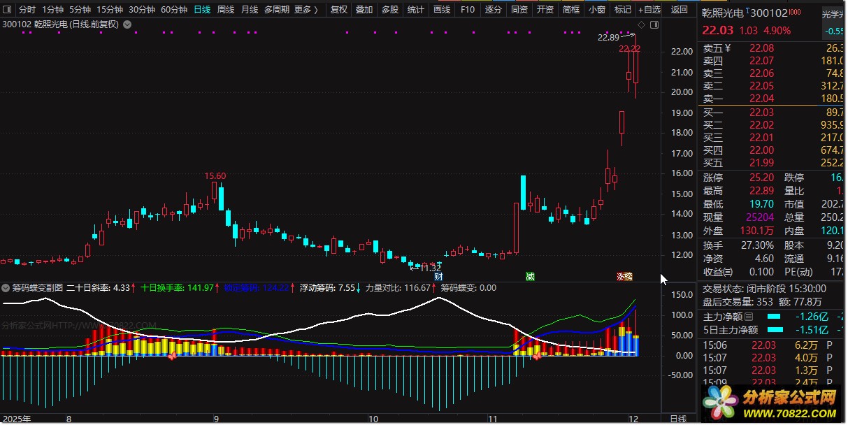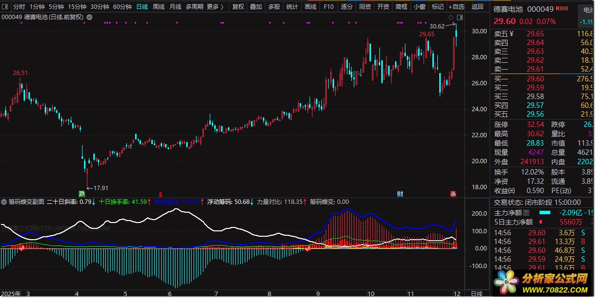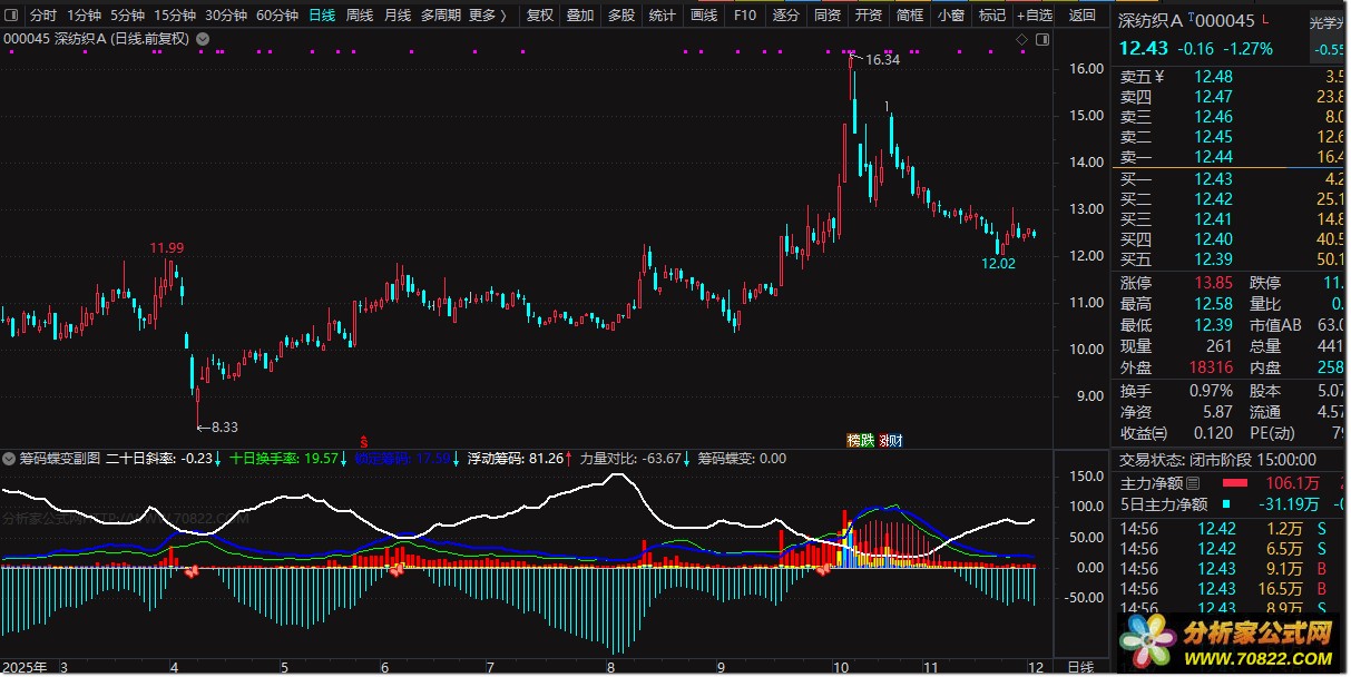 今天要分享的指标是“筹码蝶变”副图指标,附带选股功能,该指标无未来函数。此筹码类抄底指标,专为捕捉极度超跌股票的最终抄底时机打造,也可称作“末日抄底”指标。近期市场行情不佳,众多股票连续下跌一周甚至两周。运用本指标筛选,发现不少股票已发出抄底信号,抄底行情或许即将开启,这很可能是今年最后的抄底好时机。春节前的行情盛宴即将到来,标哥分享此指标,就是希望助力大家精准把握此次抄底机遇。特别提醒,使用本指标时,要结合热点板块分析,这样能提高操作成功率。对于前期大幅上涨、目前处于高位回调阶段的板块,建议大家规避,我们专注抄底,不做接盘者。下面介绍“筹码蝶变”指标使用方法: