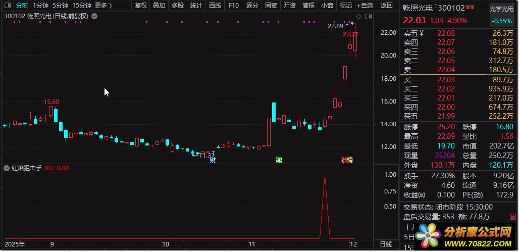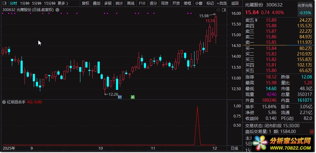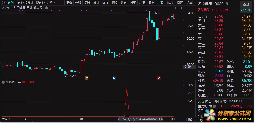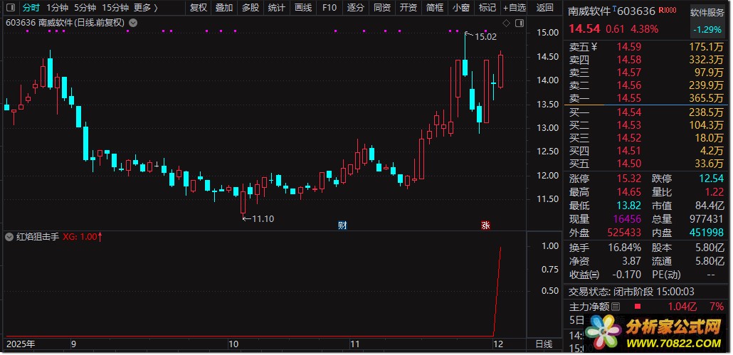 最后,分享一个通达信选股指标,该指标基于月线、周线、日线均呈多头排列,并融入其他上涨因子编写。信号出现后,股价大概率继续上行,但能涨多高、何时回调、回调幅度均无法预知。