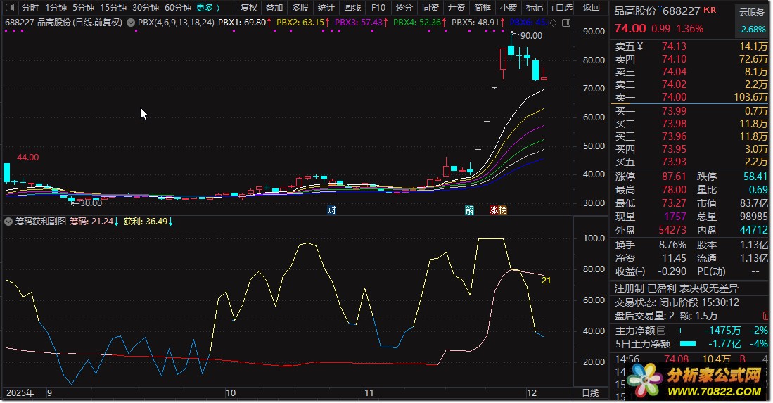 1、红色加粗(筹码线小于5):这表明筹码异常集中,一旦股价启动,极有可能出现较大涨幅。此时投资者可重点关注该股,耐心等待合适的介入时机,把握盈利机会。