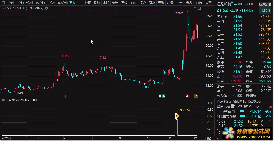 规避跟风拉升股:若个股在尾盘2:30后突然放量拉升且无明显支撑,上涨角度超80度,多为主力试盘行为。次日易现抛压,风险较高,应主动规避。