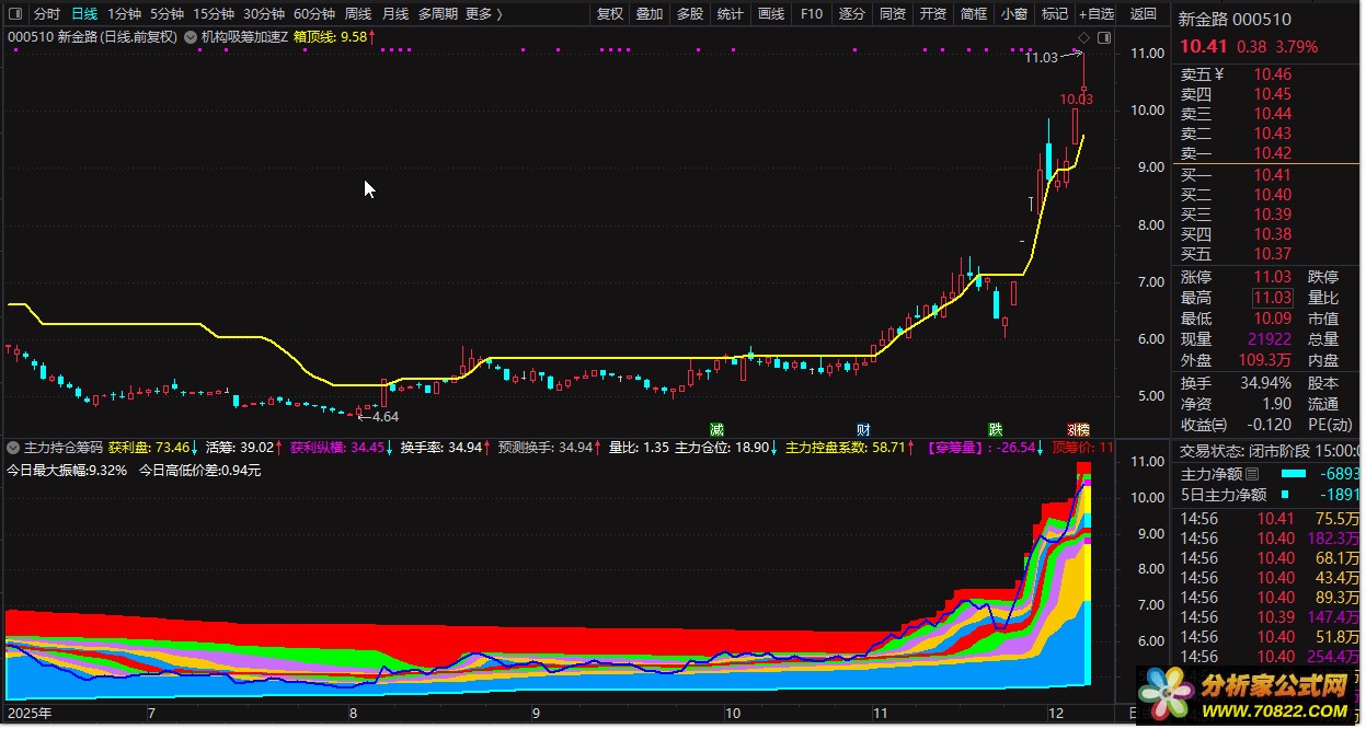 辅助判断:结合预测换手、量比,若量比>2 且主力控盘系数上升,佐证资金进场,信号更可靠。