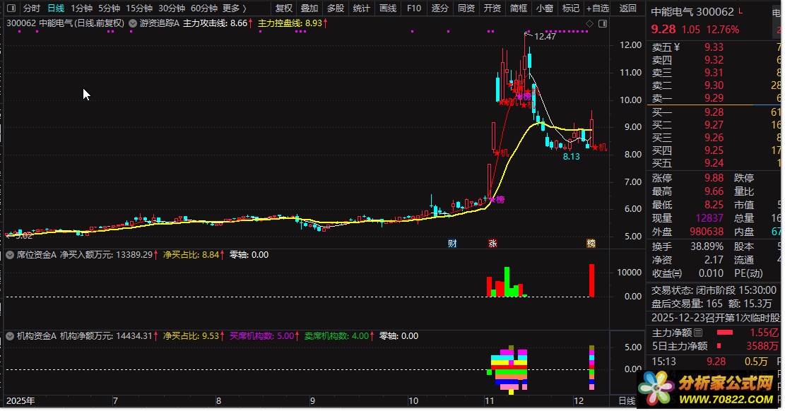 【游资追踪A+席位资金A+机构资金A】公式集合,仿股多多模型(几乎一模一样)! 席位资金的红色柱子为净买入额为正,而绿色柱子为净买入为负数!这里唯一需要注意的是机构资金A这个柱子问题,一开始我是用相同色画的,但是压缩后会成为一条直线!
