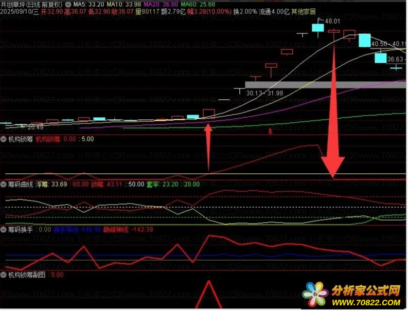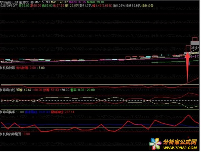 机构锁筹副图:只要是妖股,红线必定上穿5。