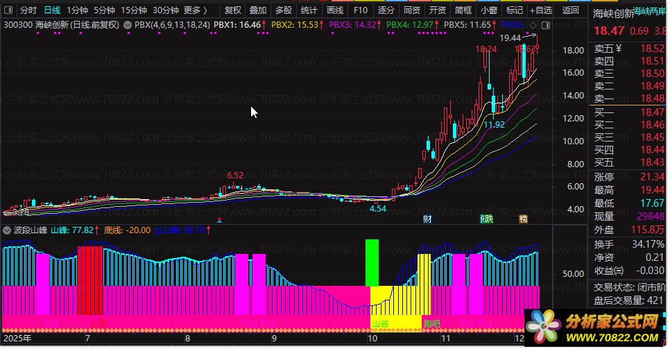 〖波段山峰〗副图/选股指标,指标详解与实战用法 指标用法解析: