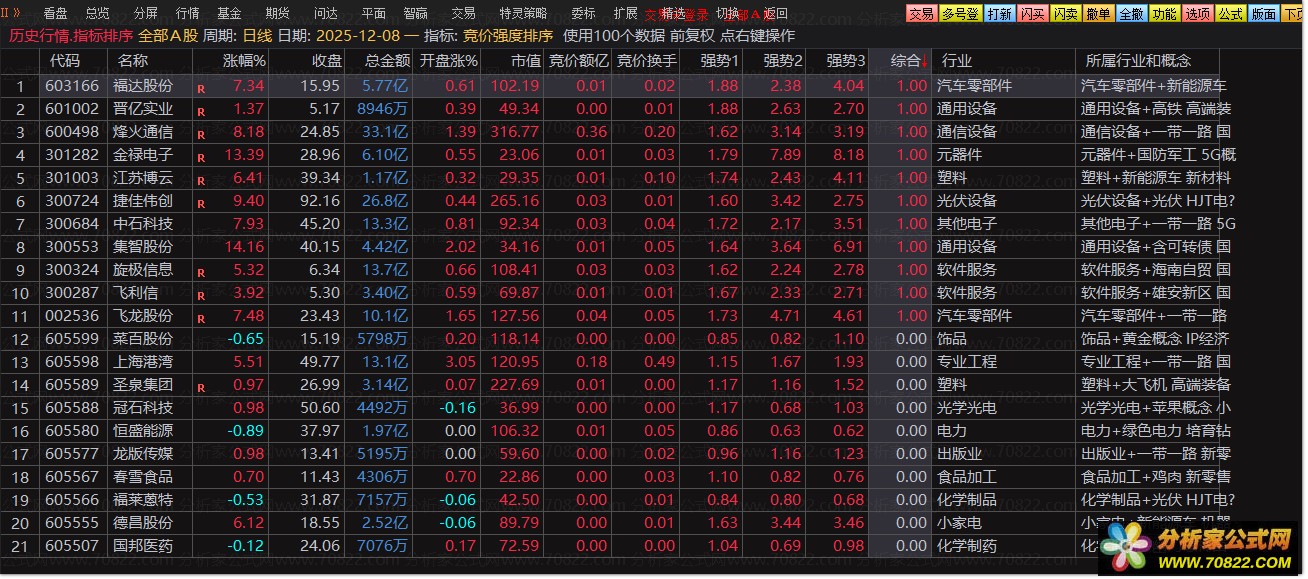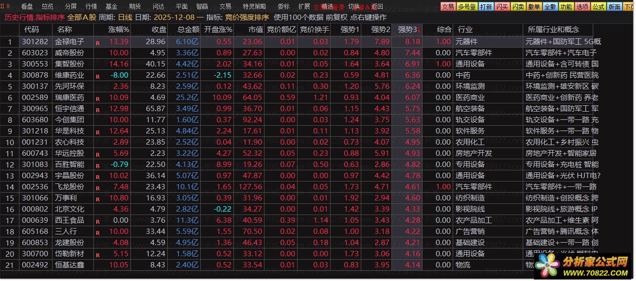 {竞价强势股} {优先选择 强势数值大的,其次是强势2和强势3排序前列的标的}