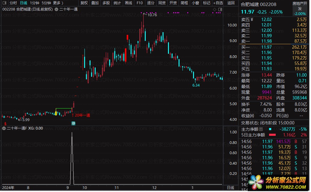 某城建股,信号于2024年9月5日盘后选股出现,次日进场后连续收获5个涨停板,其中4个为一字板。