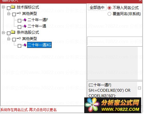 * 关于股票公式时间限制,如果在引入大智慧公式,交易师公式或者飞狐公式的时候,发现公式名称栏是空白的,这时候调整电脑时间到1997年,又能出现公式名称,并且能正常显示,可能是公式使用期限已过。