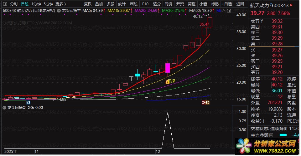 〖龙头回探〗主图+选股指标——强势牛股每日捕捉技巧详解 今日分享“龙头回探”主图及选股指标,无未来函数,专注短线交易。当明确信号出现时,需快速评估形态优劣。优质形态需结合分时走势确定买入时机,建议股价短暂回调时果断介入,避免盲目追涨。次日达预期高点即卖出锁利,实现稳健收益。