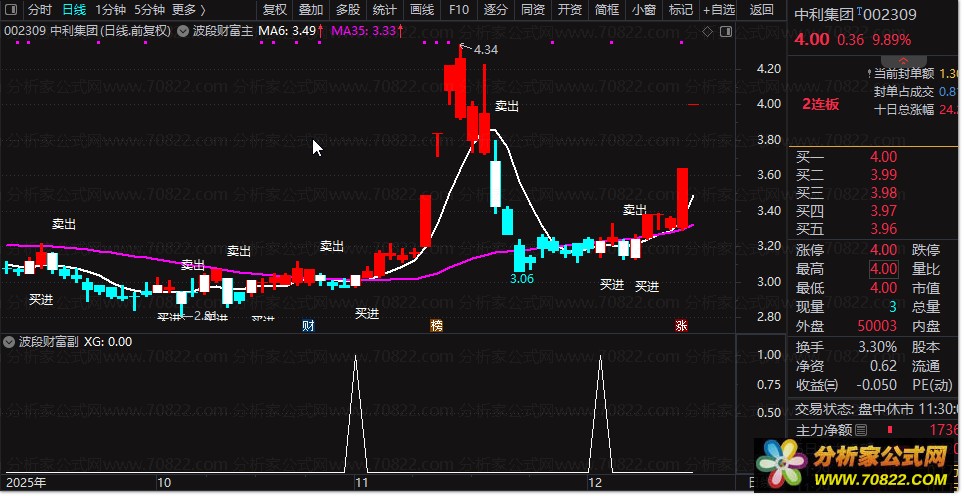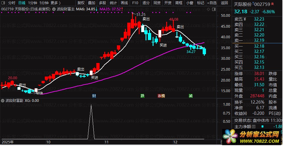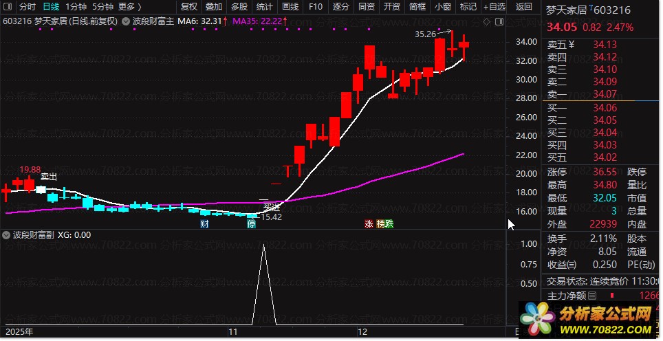 股价上穿白色线是短线买入信号之一。更为关键的是,当买入提示出现且股价站上紫色线或白线金叉紫色线时,构成稳健的中线建仓机会。
