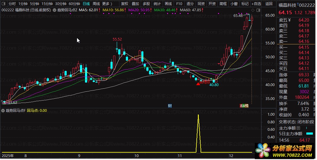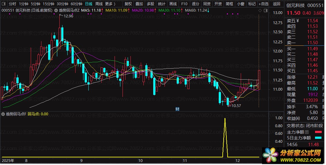 趋势回马点是一款专为短线反弹行情设计的通达信指标,融合均线、动能、超跌等多维度信号,精准捕捉股价回调后的企稳买入点。