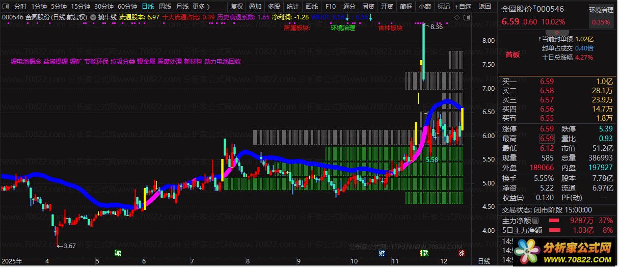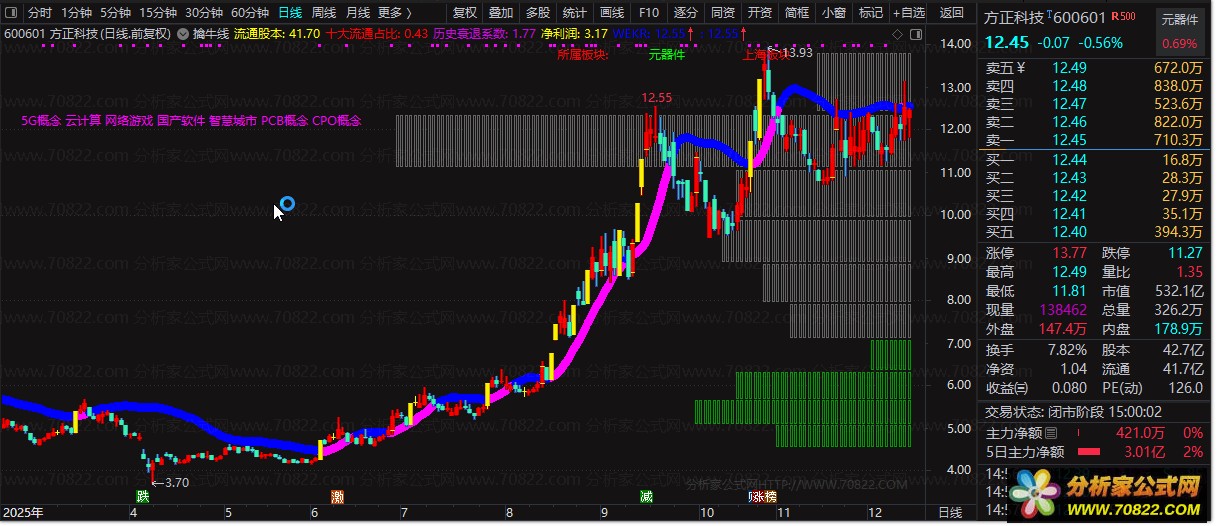 4️⃣ 趋势信号强化:阳线用蓝紫色渐变填充,阴线用橙红色渐变,配合涨幅≥7%或5%的特殊标记,直观呈现强势上涨信号。