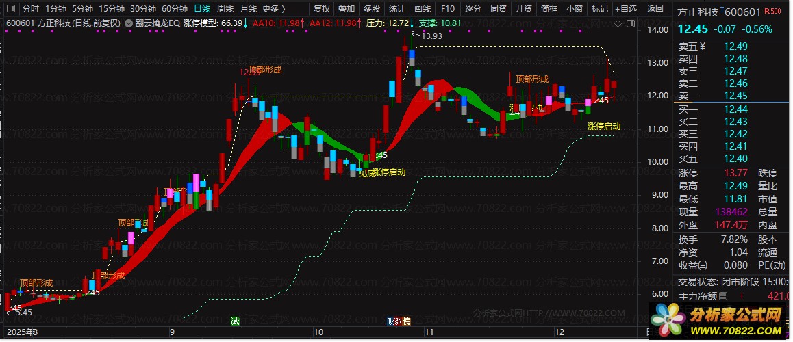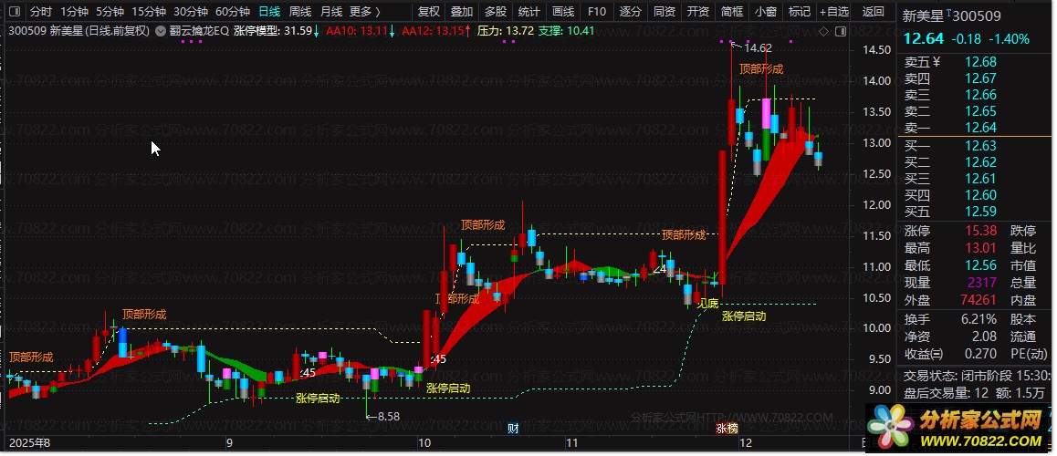 将公式加载至通达信主图,适用于日线级别。重点关注“∠45”、“尝试”、“见底”、“涨停启动”等文字提示,配合压力支撑带进行买卖决策。适合短线交易者及波段投资者使用,建议结合大盘环境与个股基本面综合判断。